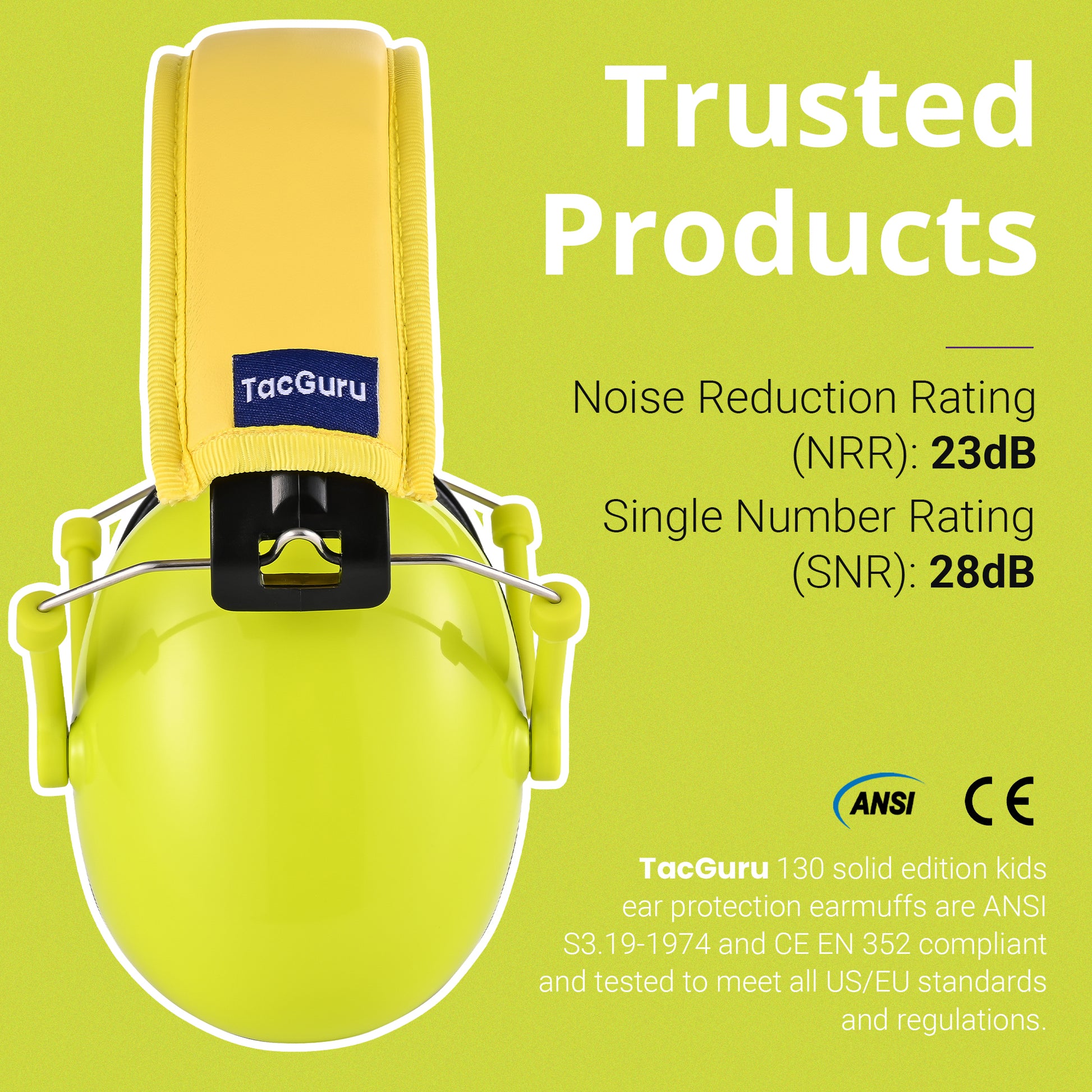 TacGuru 130 Solid Color Edition, Kids Ear Protection Earmuffs, Hearing Protection for Kids, One Size for 3-16 Yr Old